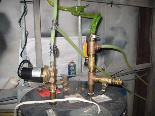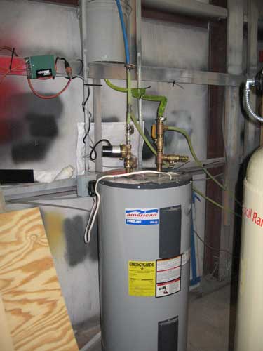 The main components include the water heater (electric at the moment), circulation pump, Taco pump control,