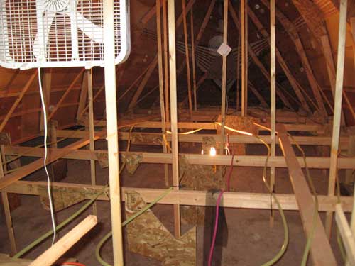 has been hung to circulate the warm air and help draw moisture away from the inside layer of the mudding.