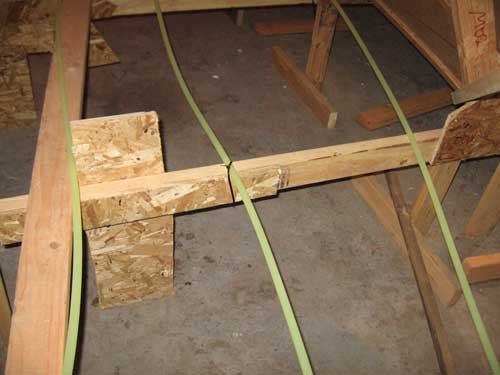 main thermostat, and radiant pipes. In this case 250' of 1/2" pex pipe is strung throughout the inside of the plug.