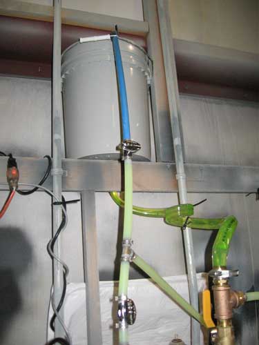 A yellow dye has been added to the water to aid in locating and removing entrapped air. The system is not