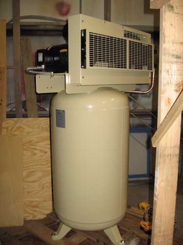 adds an automatic electric condensate drain valve, low oil shutdown sensor, and air aftercooler. After the compressor is