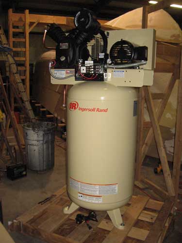 Today the air compressor arrived. It has been partially unpacked in the pictures below. It is an Ingersoll Rand 7.5HP